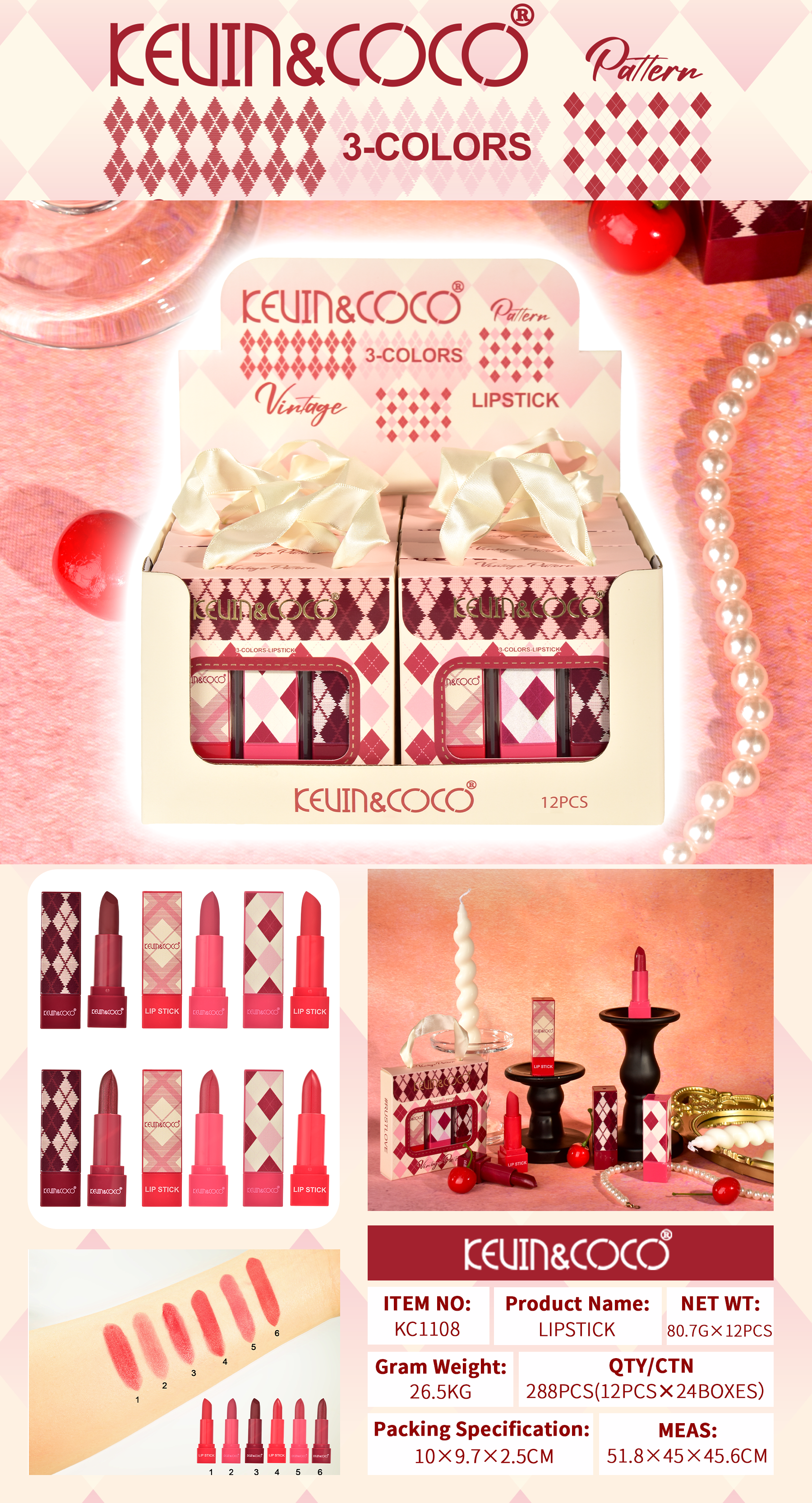 Set de Labial en Barra Vintage 3 Piezas – Kevin&Coco REF:KC1108